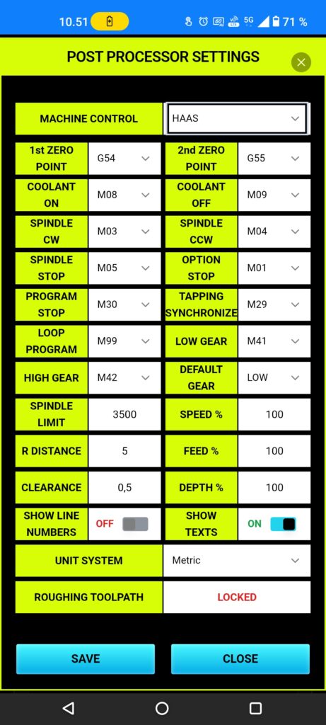 Setup all other settings to matching you CNC lathe, be carefully with (spindle limits) do not never exceed your CNC machine spindle limits.